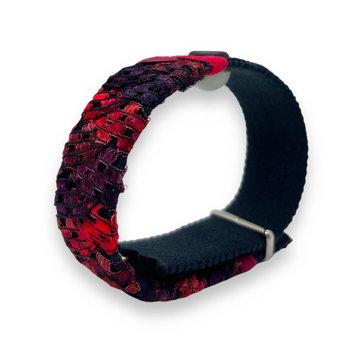 Slip the bracelet on and adjust using the Velcro strap for a snug fit. Wear it on either wrist depending on comfort.